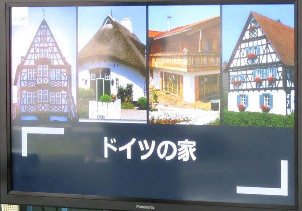 ドイツの家についてでした。地方によって材料や形などが変わっていることや一般的なドイツの家のつくりについて学びまし