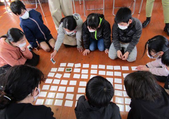 2コマ目は神経衰弱ゲームをするので、簡単に練習をしました。窓の外をみると雪が激しくなっていました!(>_<)