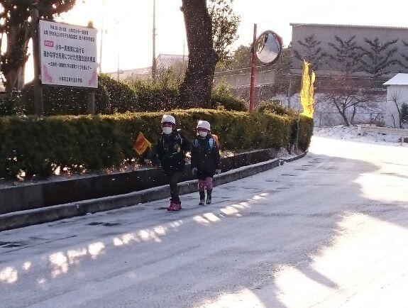 雪でした。そんな中、子どもたちは元気に登校してきました。“おはようございます!”と元気な声と明るい笑顔であいさつ