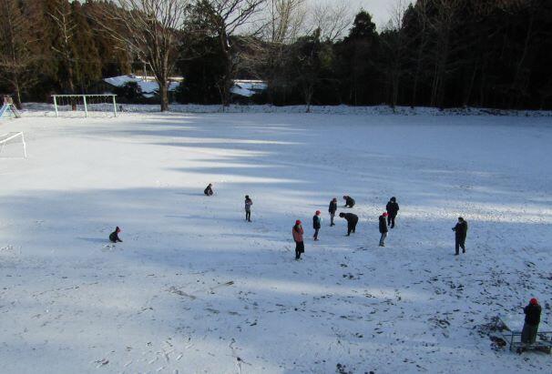 花壇の花も雪に覆われていて、寒そうでした。(>_<) 運動場は子どもたちが独占!久しぶりの雪に子どもたちは大喜びです。