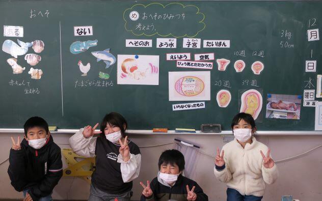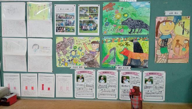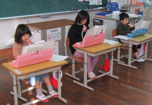 3・4年生の授業です。何が好きですか?果物です。などの学習でした。授業を見ていたら、隣の教室から、