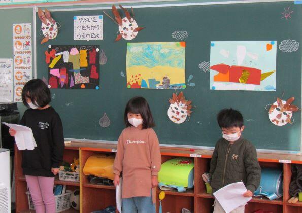 1・2年生の教室に届けたものは、かおる幼稚園からのお届け物でした。12月16日(月)に交流をしました。その時の