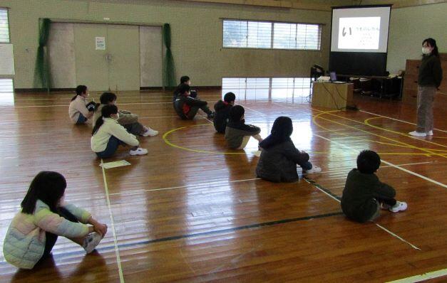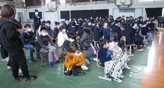 さあ、出発しましょう!西小林小の体育館に着きました。会場は超満員(^o^)!(西小林小は4~6年生でした。