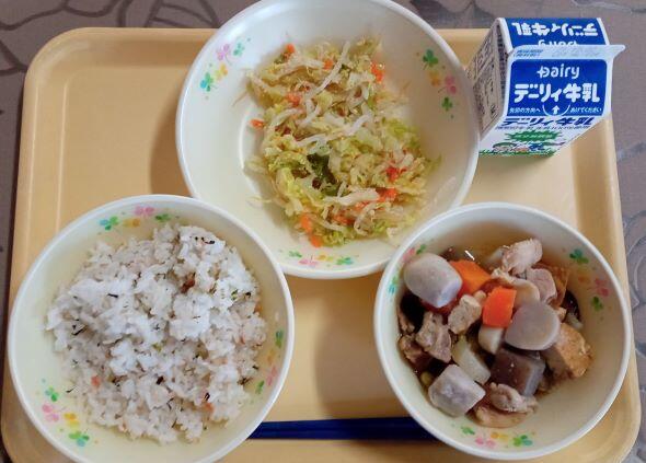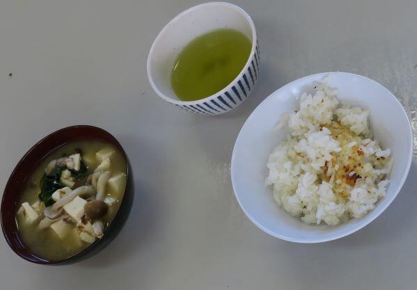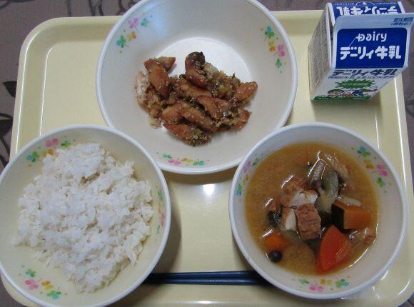 最後はこの日の給食です。メニューは 麦ご飯、魚のごま油和え、赤だしの味噌汁 でした。「魚のごま油和え」は