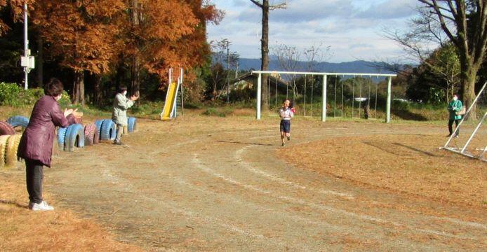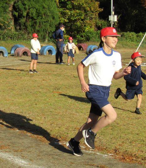 天気のよい日はこんな感じになります。下級生も上級生も応援したり、一緒に声かけながら走ったりしています。