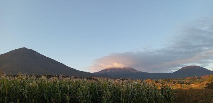 そこまではなかったですね。この日の朝の幸ヶ丘三岳です。朝日が当たって、きれいでした!