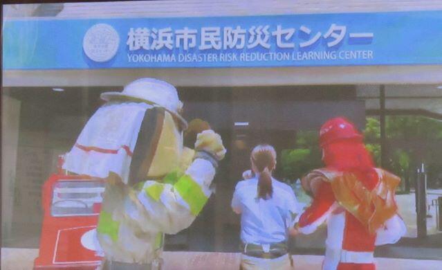 はじめに、防災に関する動画を見ました。横浜市民防災センターに入っていきます。何が出るかな?何が出るかな?(^o^)