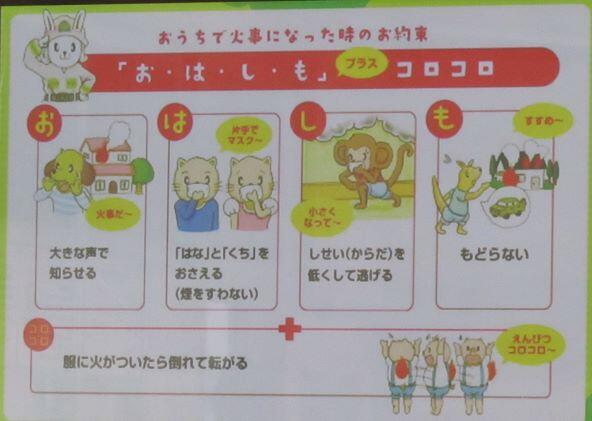 けれど、この動画では「お家で火事になったときの約束事」として、お・は・し・も があげられていました。