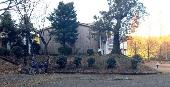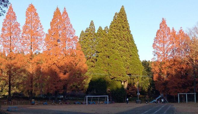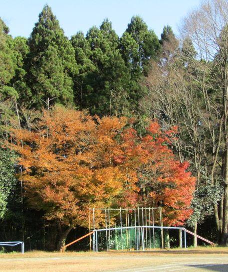 次は避難です。先に運動場に出ました。紅葉がきれいだなあ~・・・って、眺めていたら放送が入り、避難してきました。