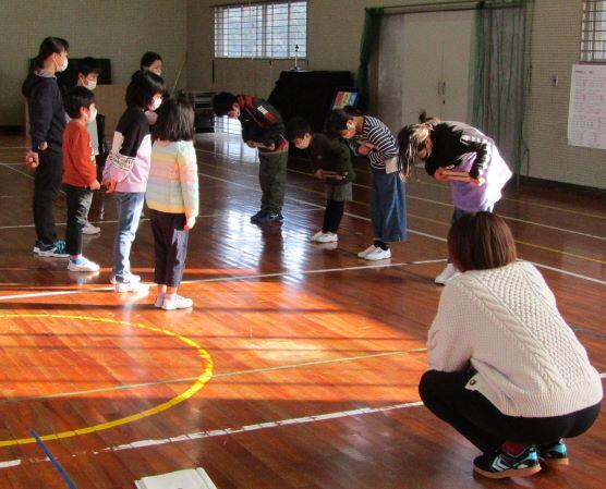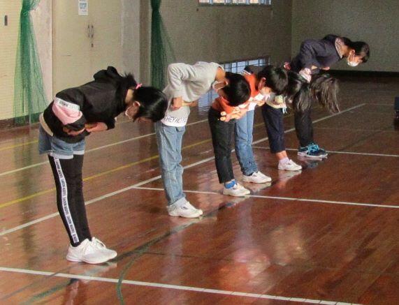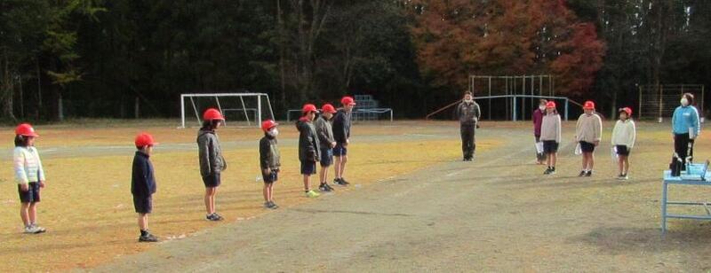 訓練の最後に、6年生がお礼のことばを述べ、みんなでお礼を言いました。「ありがとうございました!」