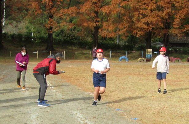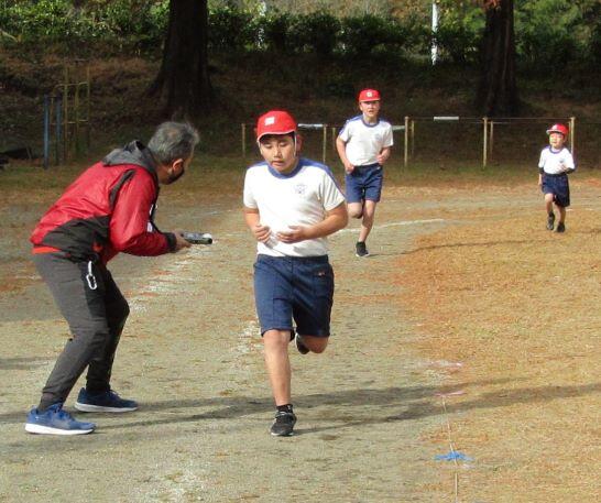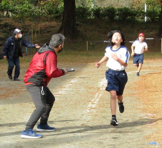 タイムを測る先生の声や手にも力が入ります!ゴールまで全力でした!