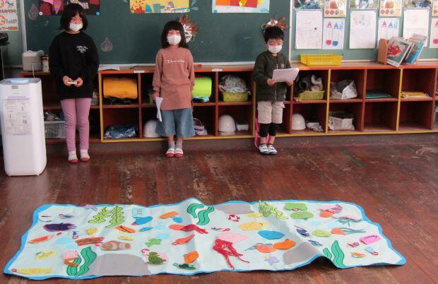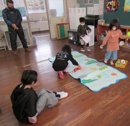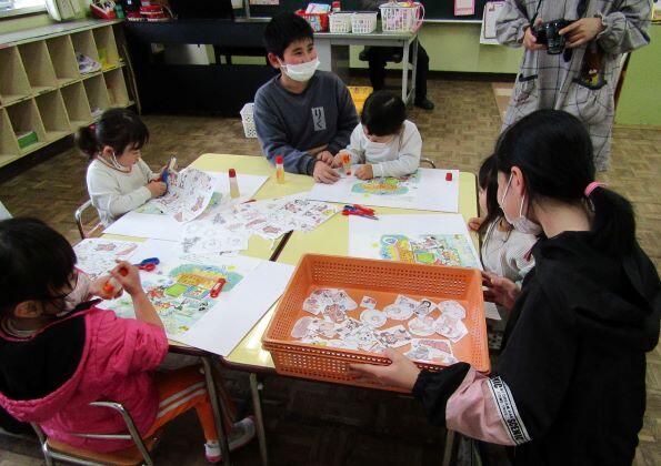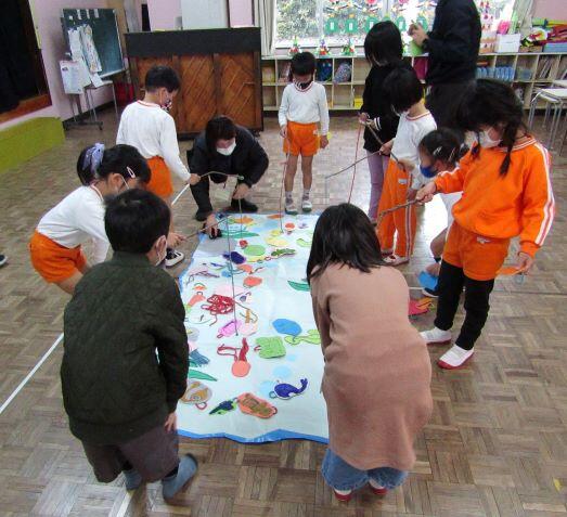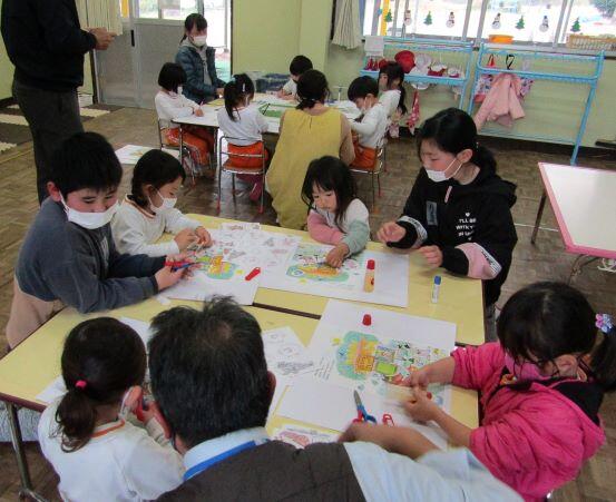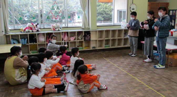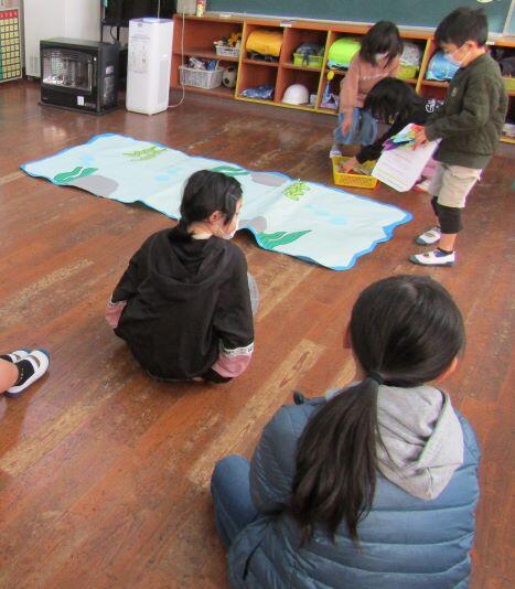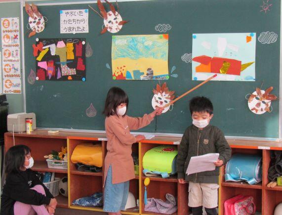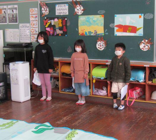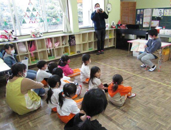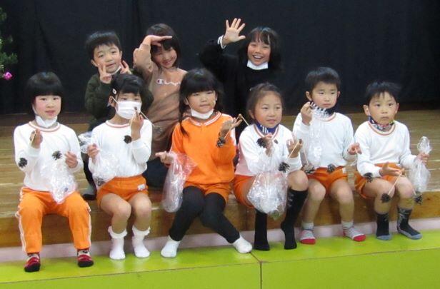 1・2年生の教室に届けたものは、かおる幼稚園からのお届け物でした。12月16日(月)に交流をしました。その時の