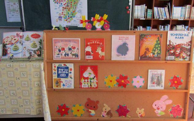 次は新年の準備の様子です。図書館協力員の先生が図書室の掲示や本の紹介コーナーを替えてくださいました。