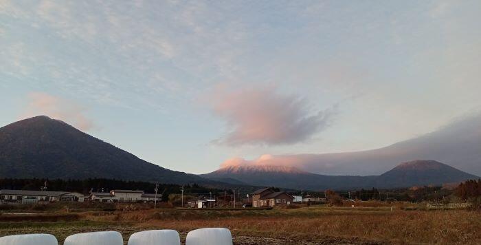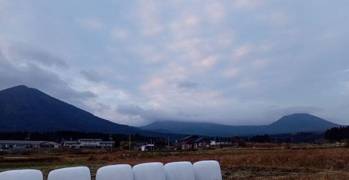 この日の朝の幸ヶ丘三岳です。山頂には雲がかかり、白くなっていました。