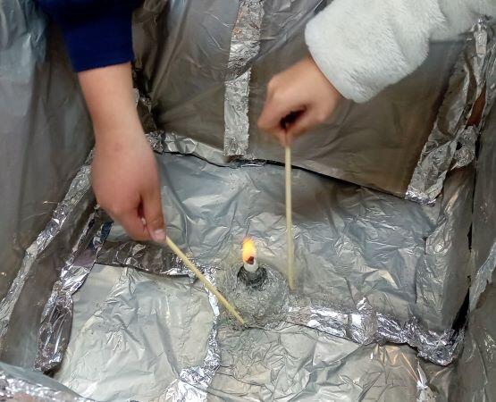 口や鼻を覆っていますね。煙を吸い込むことが一番危ないのです!(ちゃんと時間を計っていますよ!)