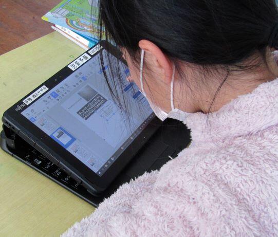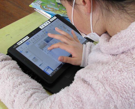 次は友だちのポスターを自分なりの考えで、変更してみました。担任の先生からはタブレットでの操作方法などの説明が