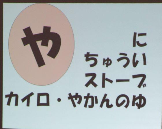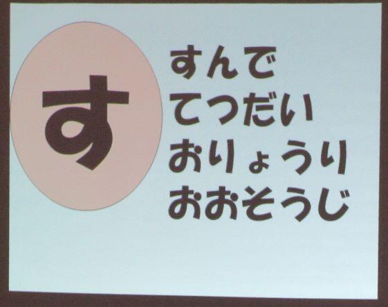 ※ 答え:た=食べ過ぎない、飲み過ぎない の=スマホやゲーム し=歯磨き ・・・や=やけど ・・・ み=手洗い、うがい
