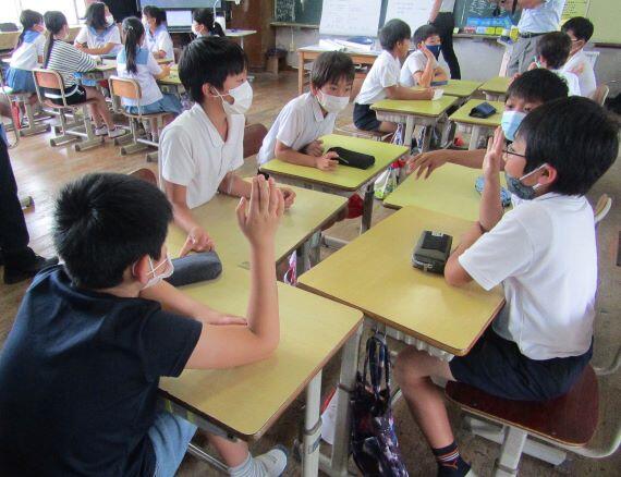 グループ分けをしたり、話し合いをしたりしながら、交流を深めていきました。6年生は11月に合同で修学旅行に行きます。