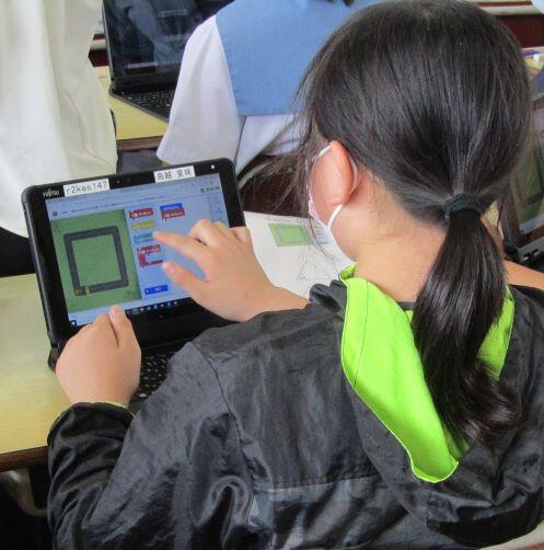 2コマ目は本校の職員が今度は6年生に向けてパソコン学習(プログラミング)の指導を行いました。