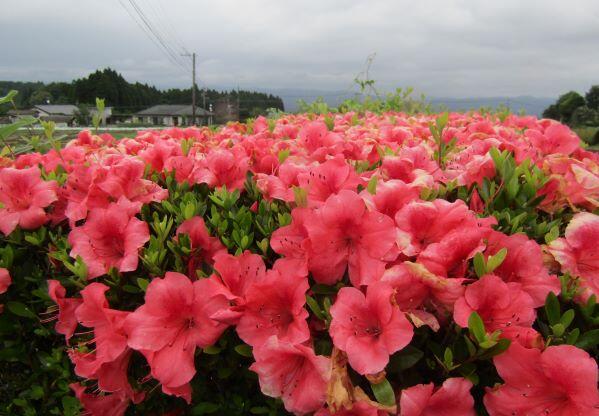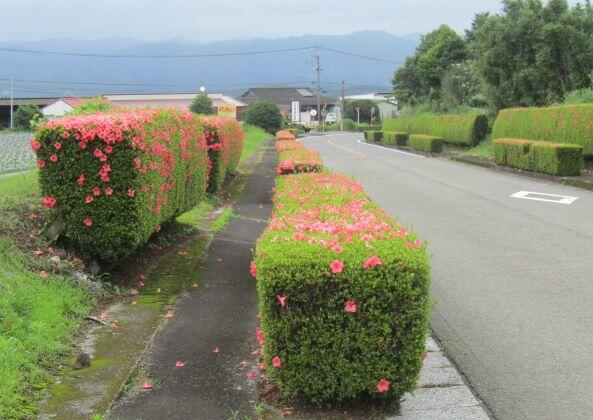 学校のそばの生駒高原に通じる県道1号線沿いにはツツジが植えられ、きれいにカットもされています。そのツツジに