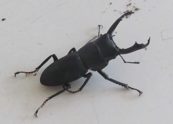 サツマイモも順調に育っているようです。この日の朝、学校の玄関のところにクワガタがいました。夜のうちに、玄関灯に