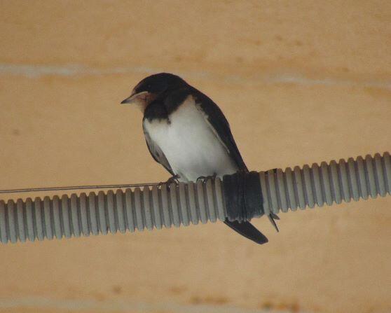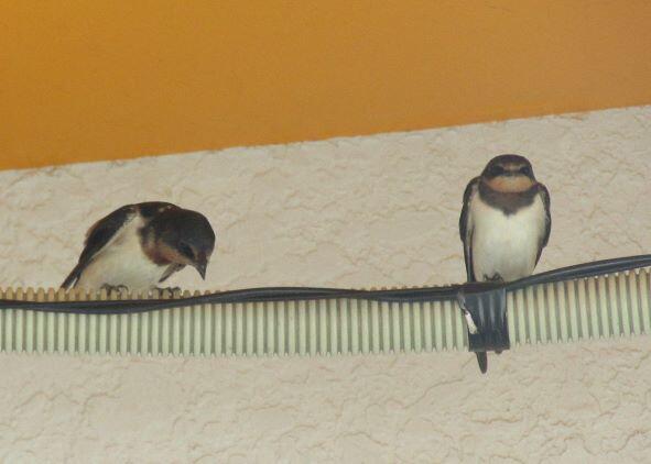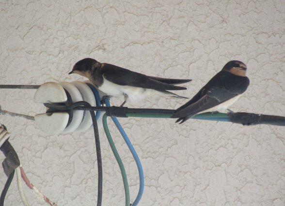 前後いて、写真のようにとまっています。くちばしの根元がまだ白いツバメも見かけます。(上の真ん中の右側と上の右側