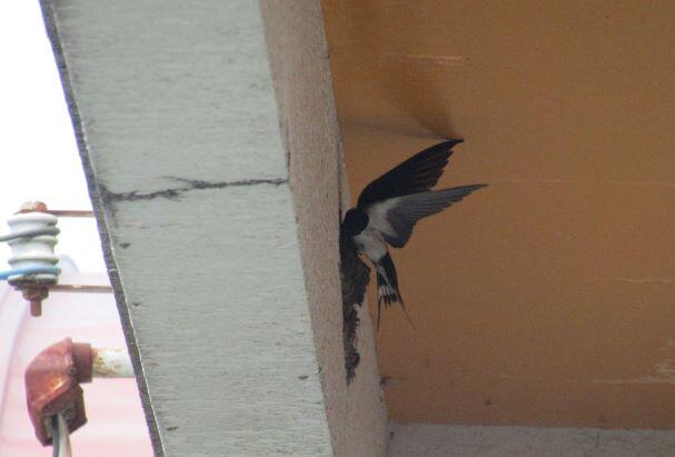 の写真)そして、去年はなかったのですが、新しく巣を作っています。前日巣立った巣の対面に二つ、2階の図書館の前の