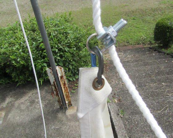 最後は旗です。掲揚台のひもの付け替えについては先日、お知らせしました。残っていた金具を付ける作業が終わり、