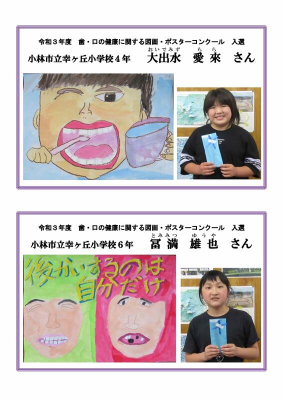 さて、先日、令和3年度 「歯と口の健康に関する図画・ポスターコンクール」の賞状等が届きました。10名応募して以下の