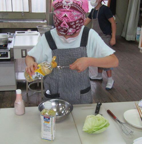 作ります。和風、中華風と好みに合わせて作ります。酢やサラダオイル、しょうゆを混ぜます。ボールの中では化学反応?