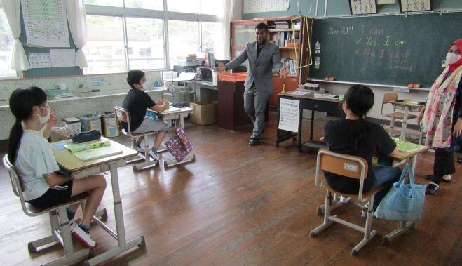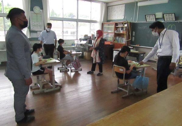 先日、21日(月)にALTの先生授業がありました。この日は市内の他の学校で授業されているALTの先生が2人、