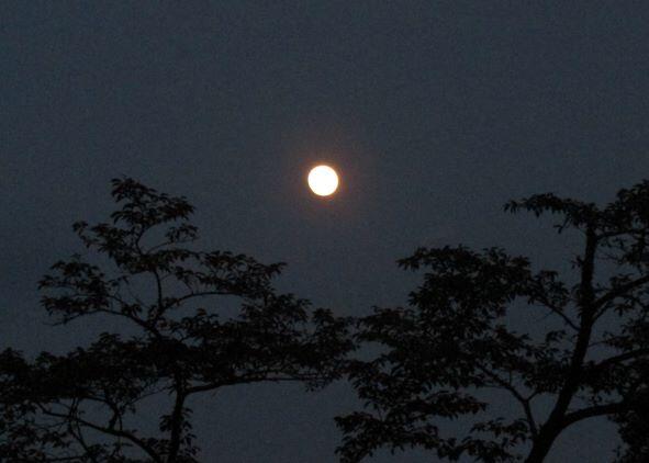 最後は前日23日(水)の月です。夜にPTAの会がありました。会が終わって玄関を出ると、赤みがかかった月が前庭の