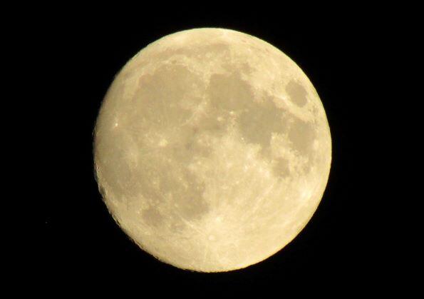 木の上に出ていました。天気が下り坂になるようなので、撮りました。望遠で撮るとクレーターなどがよく見えました。