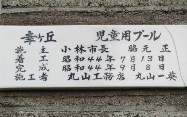 このプールは昭和44年(1969年)にできたプールです。今から50年以上も前です。入り口付近にはその時の表示