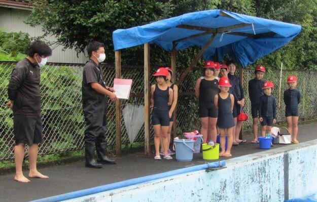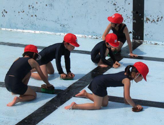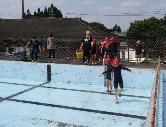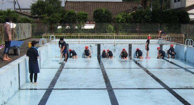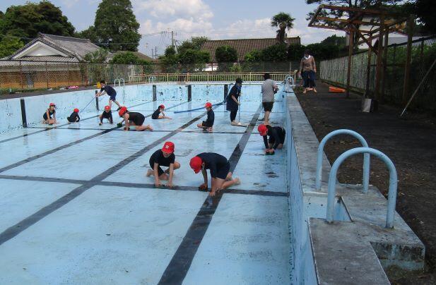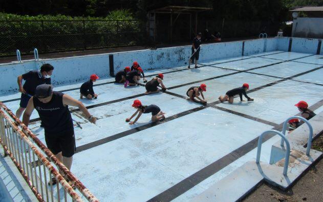 次は、6月25日(金)のプールの清掃です。以前に小さい方のプールはやりましたが、大きな方のプールは職員が