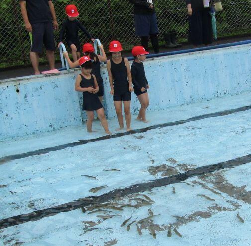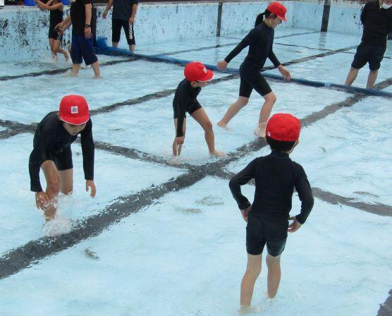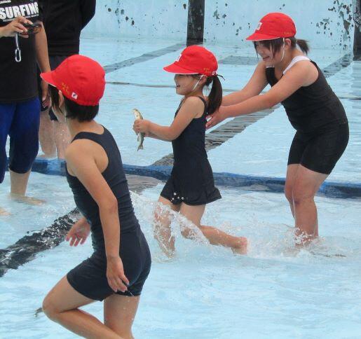 魚も追いかけ回されて、疲れてきたようです。(^_^;) 上級生が手伝って、無事、1年生も捕まえることができました!(^_^)v