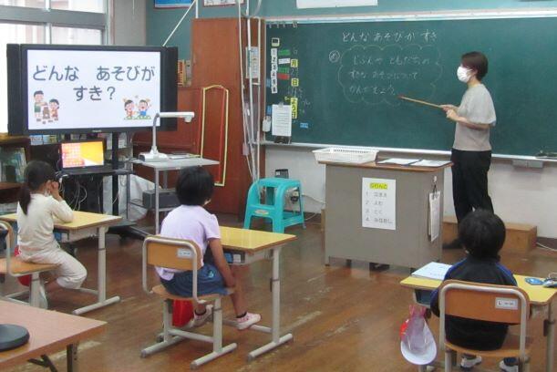 1・2年生は「どんなあそびがすき?」という授業でした。自分や友だちの好きな遊びについて考えたり、他の人の意見を