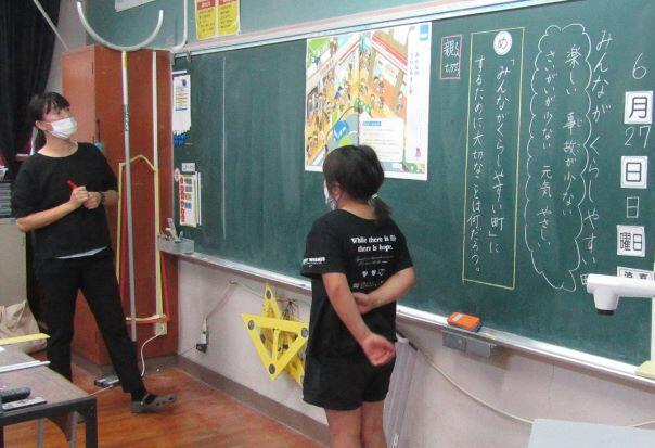 3・4年生は道徳の授業でした。「みんながくらしやすい町にするために大切なことは何だろう?」という目当てでした。