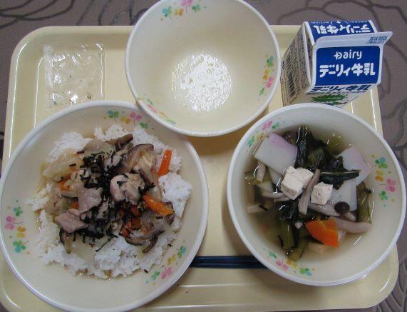 そして、、、この日の給食です。この日は【県産農畜水産物応援消費推進事業】で国からの補助による みやざき地頭鶏(みやざきじどっこ)の提供でした。地頭鶏は宮崎県や鹿児島県の一部で古くから飼育されてきたニワトリです。昔のえらい人(地頭:じとう という役職)たちに納めていたところからこの名前が付けられました。メニューは 地頭鶏の照り焼き丼 きざみのり すまし汁 でした。とっても美味しかったですよ!(^_^)v