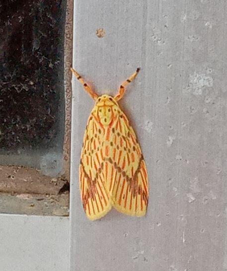 玄関のところに、蛾がいました。蛾ってきれいな色をしていますね。色も様々です。擬態?擬色?なのでしょうか。