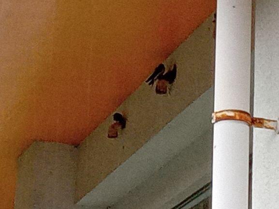 一方、ツバメも雨ばかりなので、巣があるところや軒先で雨宿りをしています。