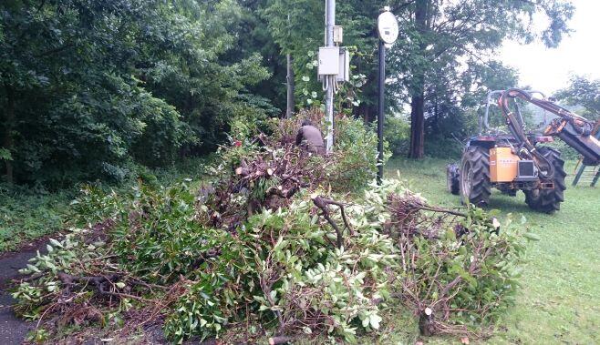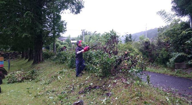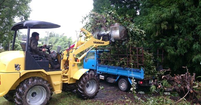 太刀打ちできないので、重機を使いました。チエンソーも使って切りました。