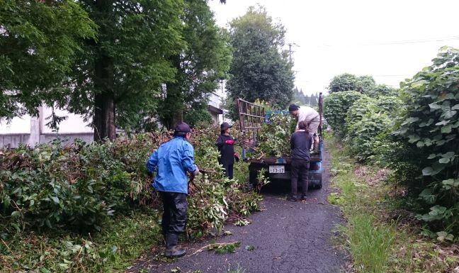 切った枝はトラックに積み込み、捨てに行きます。2時間あまりの作業で、こんなにもきれいに、スッキリしました。