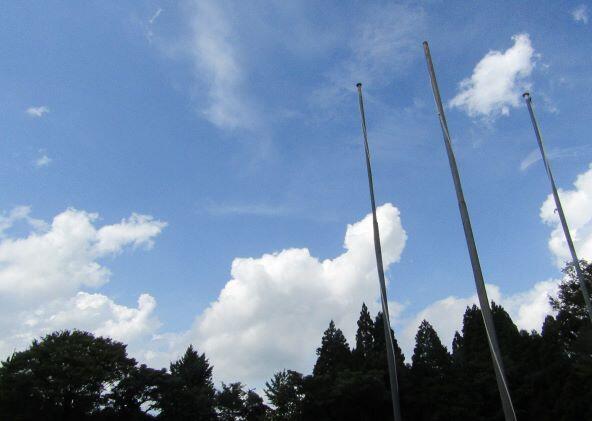 前の日の午後の様子を少し・・・。校舎2階から見える幸ヶ丘三岳も久しぶりに山頂まで見えました。掲揚台の所からはきれいな青空も見えました。