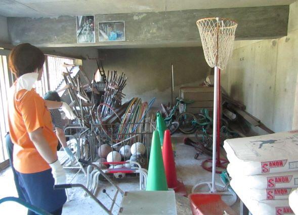 さて、夏休みの日に・・・⑥です。今回は7月下旬に実施した、体育館下の倉庫の片付け・掃除についてご紹介します。