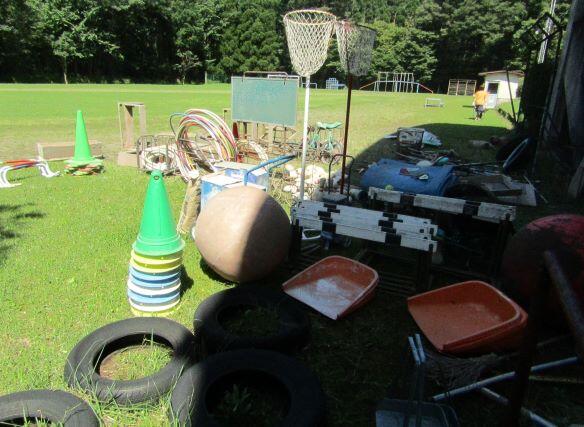 一輪車や竹馬、大玉などがありました。もう使わない(何年も使っていない)ものがたくさんありました。(+o+)