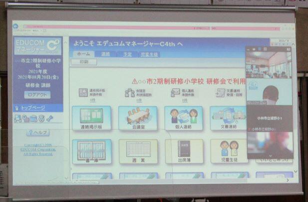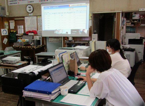 職員室で、スクリーンに映し出して、見たり、手元のパソコンで実際に操作しながらの研修でした。