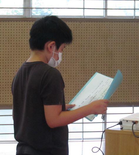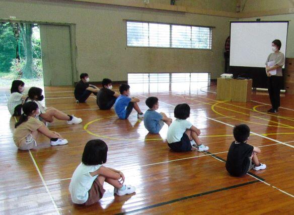 続いて、夏休み明けの全校朝会をしました。校長先生からは、夏休みの振り返って、これから頑張って欲しいことのお話の