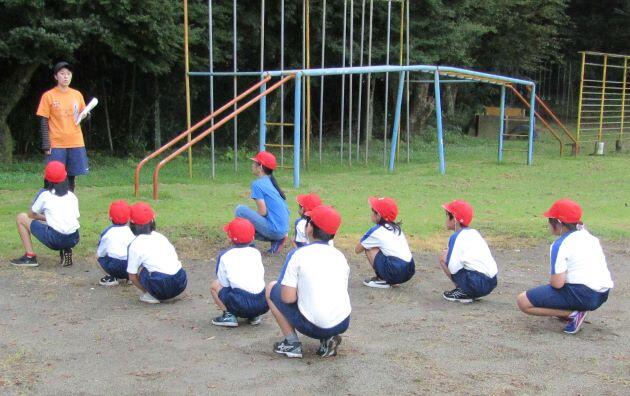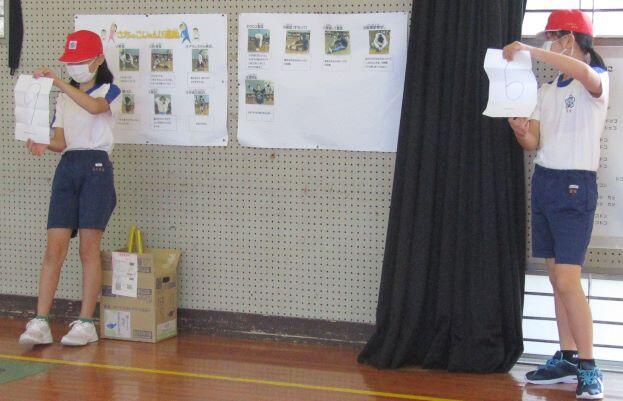 行いました。3年生以上の子どもたちが参加しました。あいさつの後、早速、問題が出されました。問題「やり投げの