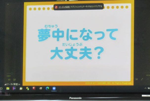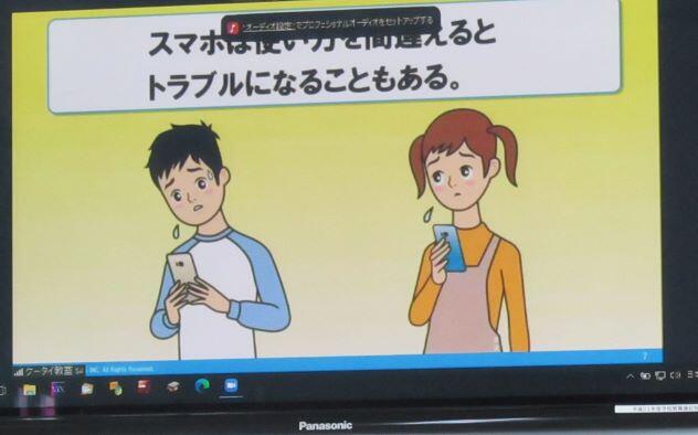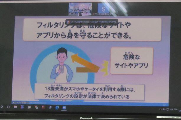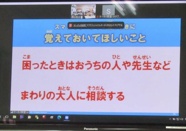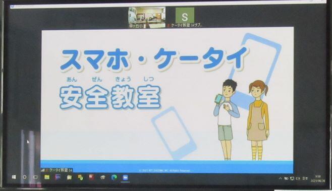 この日は、「スマホ・ケータイの安全教室」を実施しました。講師を招いて行う形式ではなくて、今回はオンラインで